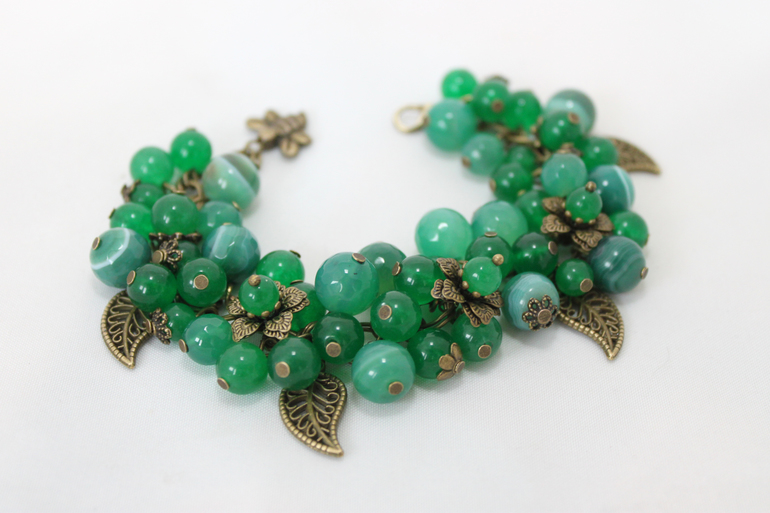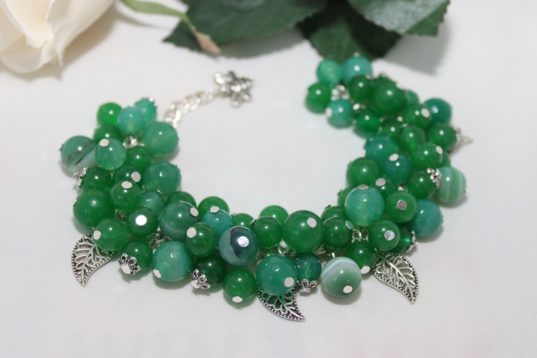 4. Браслет "Зеленый лес" Фурнитура под бронзу, агат, нефрит, хризопраз. На руку 15-16см