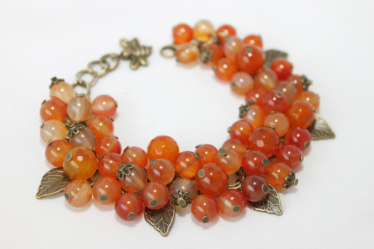3. Браслет "Осень" Фурнитура под бронзу, сердолик, агат. На руку 15-19см