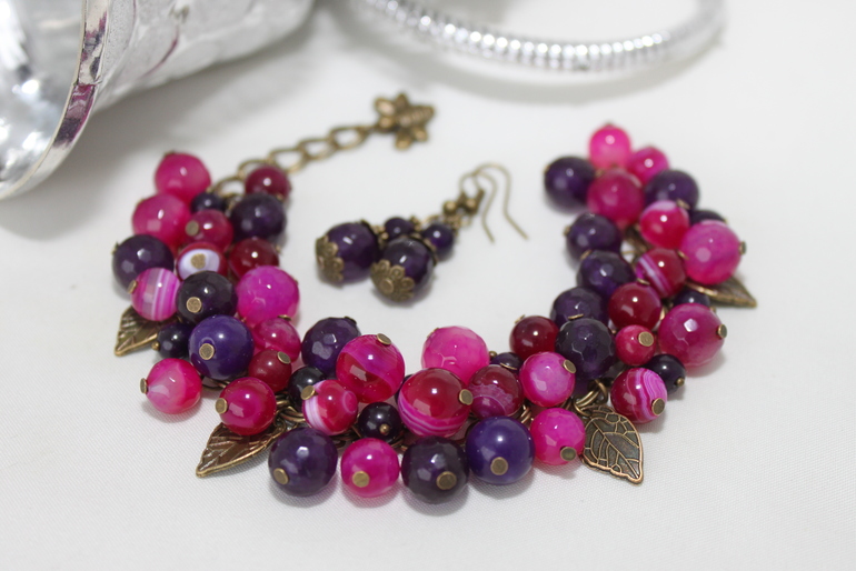 10. Комплект "Малиновый щербет" Фурнитура под бронзу тонированный нефрит, агат. Размер регулируется от 15 до 18см
