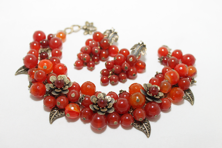 5. Комплект "Осень" Фурнитура под бронзу, сердолик, агат
