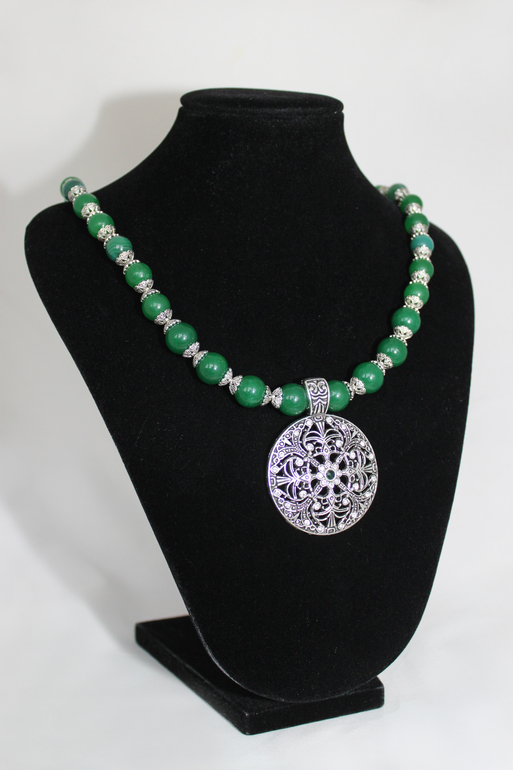 1. Комплект "Зеленый лес" Фурнитура под серебро, агат, хризопраз, нефрит