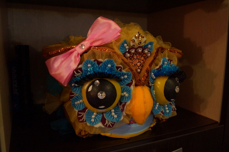 Когда шапочка была в процессе шитья, ребенок отказывался примерять её. . Поэтому шила "вслепую". Только вот буквально неделю назад удалось надеть, но тогда шапка была уже готова. Не рискну, наверное, что-то менять - все распарывать придется и срезать поролон внутри. Там уже все взаимосвязано - один стежок распорю, вся мордочка изменится. Оставлю как есть.