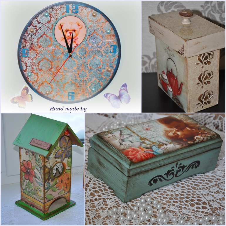 И я туда же. Решила показать свою кучку работ за 2015 год. Когда стала собирать всё в кучу не поверила, что всё это я сделала за год! Здесь не все работы. Устала собирать их в кучу. итак, начнем с любимых кукол. Декупажное не всё показываю и флористические работы совсем не показываю.