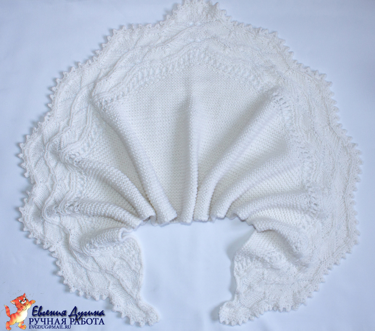 Итак, шаль Архангел.... Вязалась для коллеги...Начиналось все хорошо, до тех пор пока не настала очередь ажурного края))) И вот даже сейчас, положа руку на сердце, могу сказать, что ничего там нет сложного, но блин..))) Такое количество петель... Я сбивалась раз пять, потом договорилась с коллегой, что я лучше уж свяжу что-то другое. Останавливало меня одно обстоятельство - честолюбие)))))) Написав в поисковике "Шаль Архангел" я получала такие результаты - один с оригиналом, второй Анин) Поэтому подумала, что ничто меня не остановит и довязала-таки)))