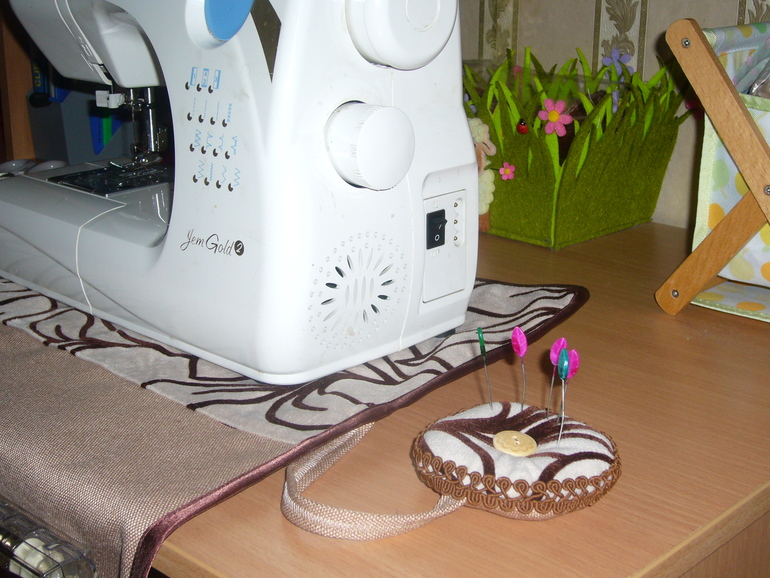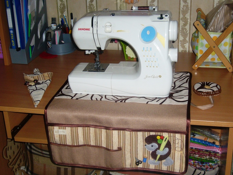 Мой рабочий уголок, запасы, инструментыУ меня остался небольшой кусочек очень красивой тканюшки с листьями,долго думала куда бы его приспособить,вот додумалась. Скомбинировав с другими тканями, получился вот такой коврик под швейную машинку.