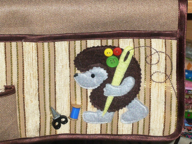 Аппликации люблю очень делать из фетра.Такой вот ежик- портняжка поселился на коврике)))