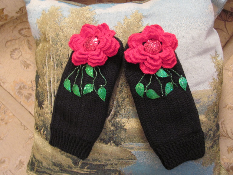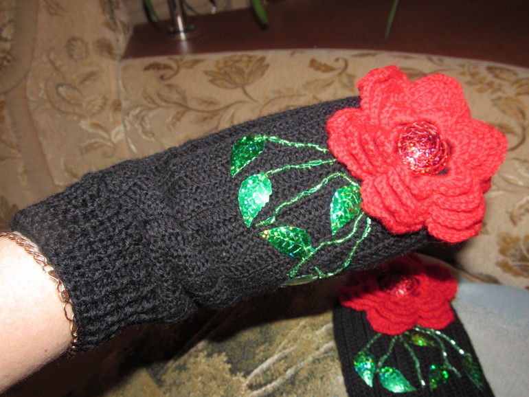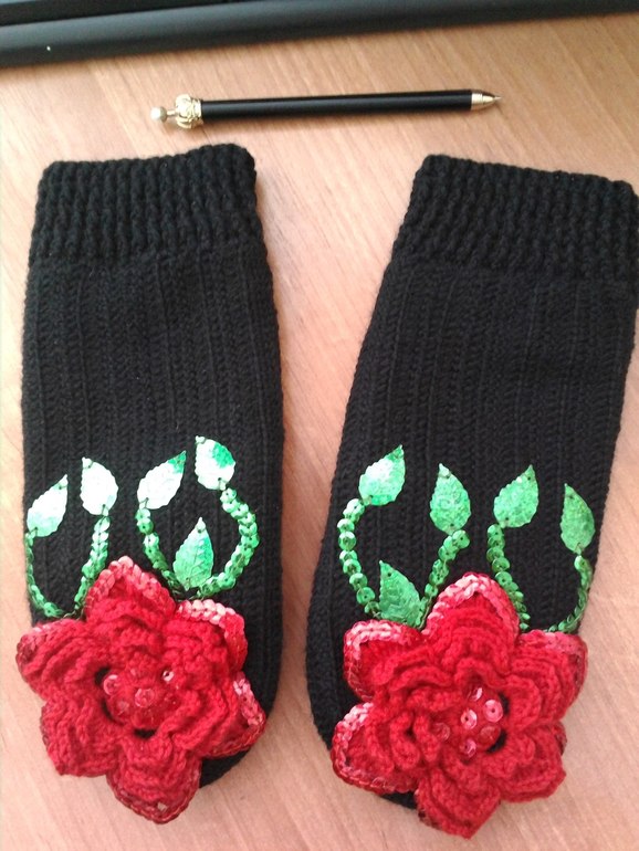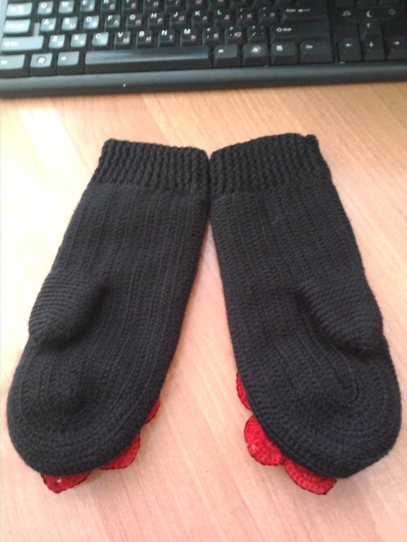 Вязание крючком (РАБОТЫ И СХЕМЫ)и почти "близняшки". Варежки двойные, все детали, даже пальчик связаны в двойном экземпляре. Обе вязала не для себя, в подарок, но себе тоже уже вяжу такие. Особенно отлично смотрятся с черным монохромным образом, с лакированной черной сумкой - просто шик. Мне кажется и под шубу отлично подходят, хотя говорят самовяз под шубу - это китч. Как вы думаете?