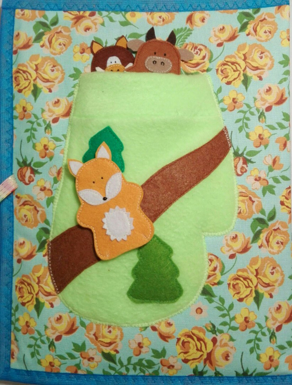 На обратной стороне папки находится варежка ( можно разыграть сказку "Рукавичка"), можно использовать ее в качестве кармашка.