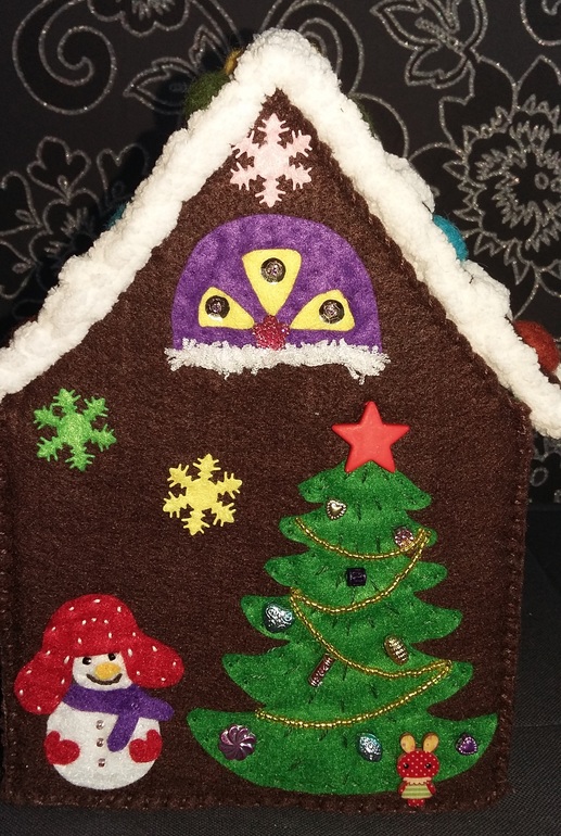 ФетрНедавно делала такой домик, но только размером поменьше (ссылка на домик https://www.babyblog.ru/community/post/rukodelie/3143833). Тот домик создавался для детишек, поэтому все "украшалки" там надежно пришивались. А этот домик делала побольше размером уже для своей сестры на НГ. Поэтому я могла себе позволить некоторый декор приклеивать к фетру, а не пришивать. Т.к. взрослые не будут все пытаться оторвать... в отличии от детишек )))) И вышло тоже очень сказочно. За деталями под КАТ: