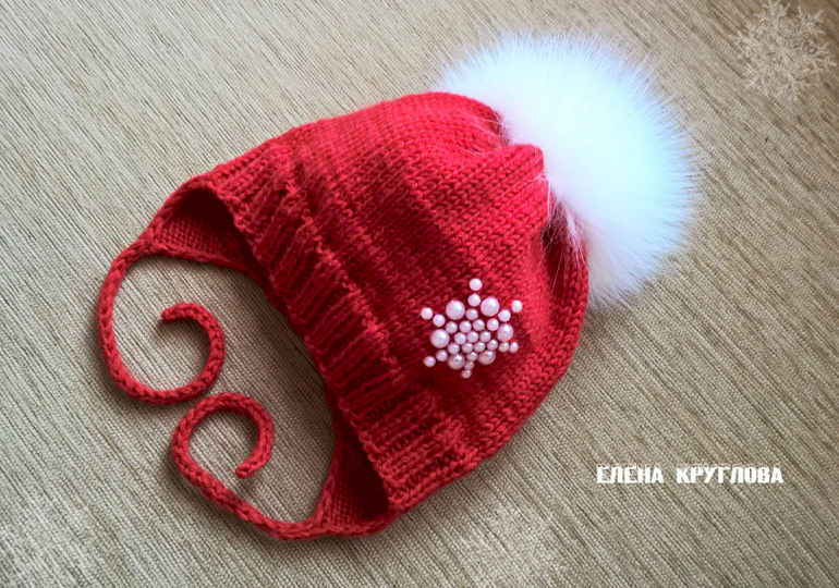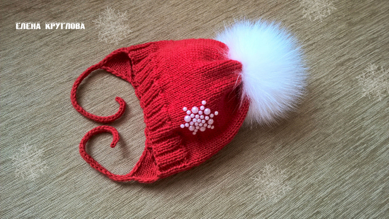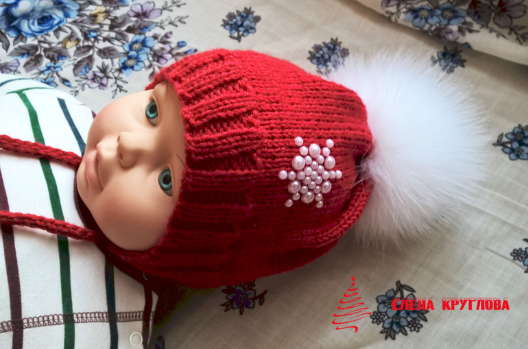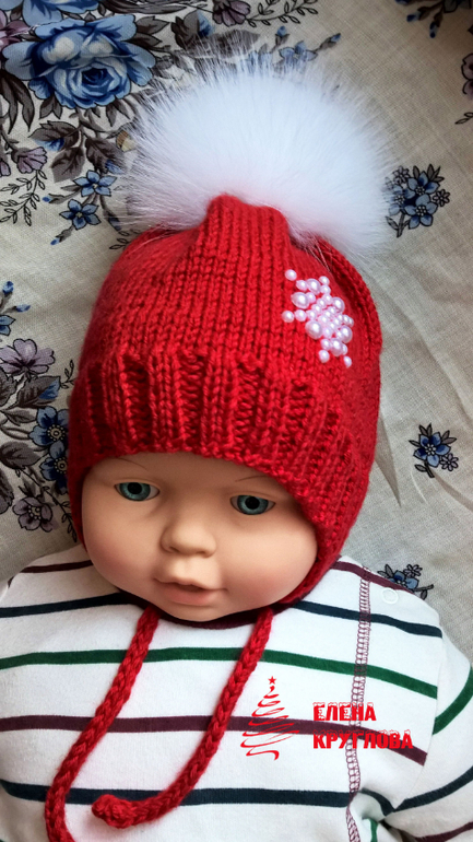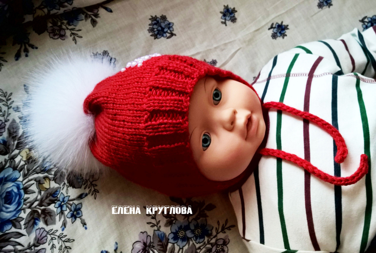 Вязание спицамиМоя первая работа в этом году-шапочка для малыша на весну. Пряжа Ализе беби вул, вязала в два сложения на круговых спицах.Помпон из натурального меха песца,украшение из полубусин. Под катом много фото