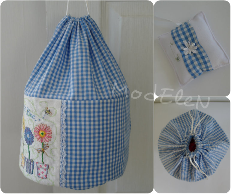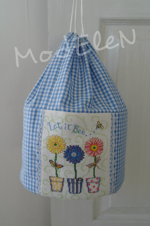 С одной стороны вышивка,с другой кармашек с пуговкой бабочкой.Донышко простёгано с синтепоном,бока до середины укреплены фетром,затягивается шнуровкой.