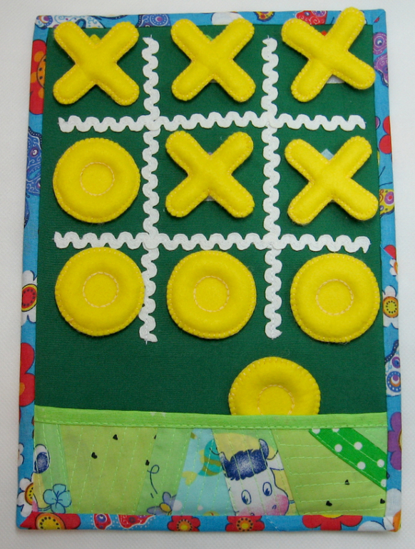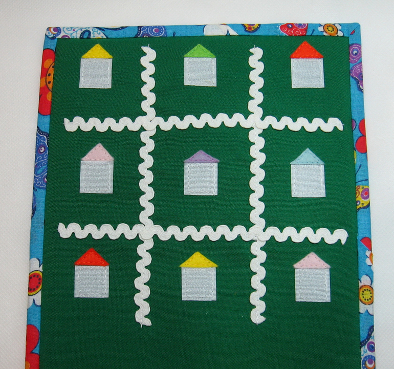 Чтобы поле было нескучным добавила к липучке крыши - получились домики. Можно искать одинаковые, можно при заполнении поля крестиками и ноликами вспоминать какая же крыша сейчас под фигуркой, можно подумать - каких цветов не хватает для того, чтобы получилась радуга.