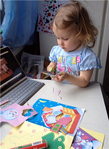 Про вырезание - да, это одно из её любимых занятий! По началу конечно тоже было ого-го чего..сейчас уже приноровилась))