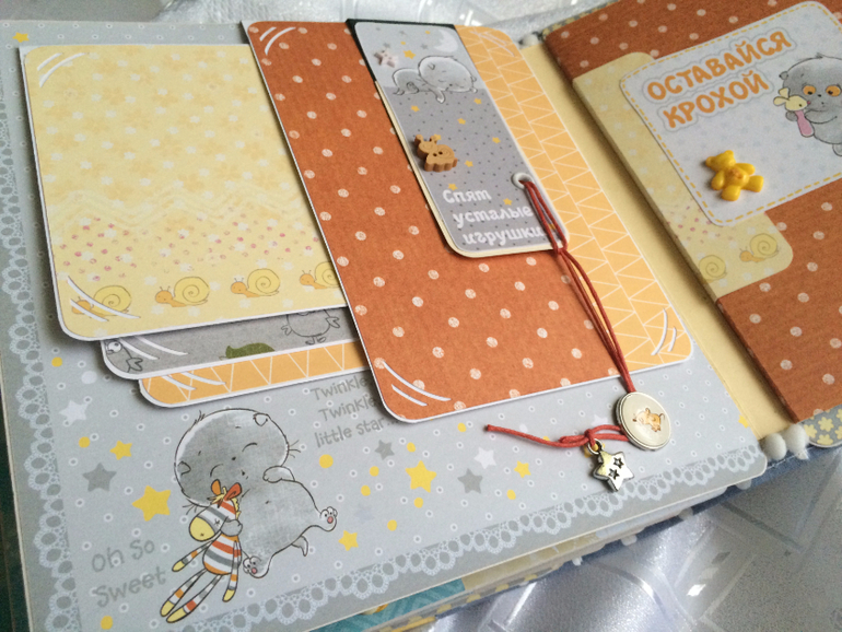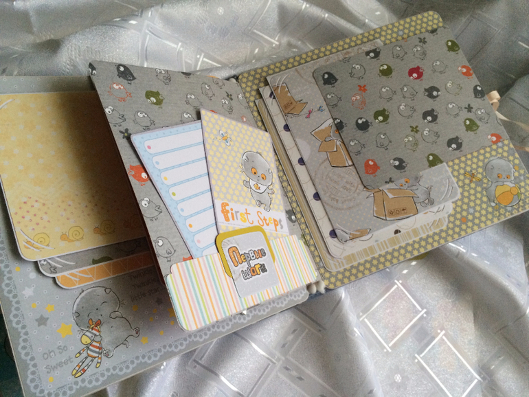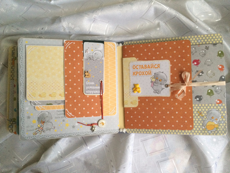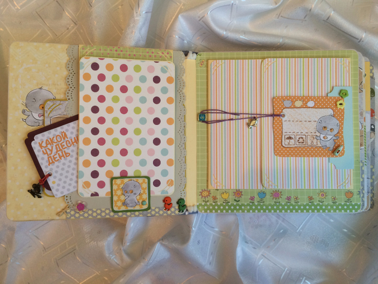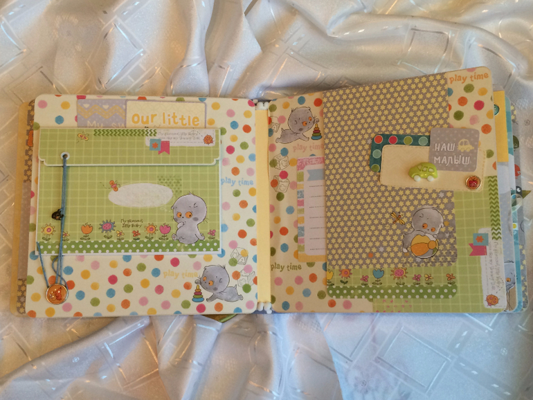 Сотворился тут в подарок на НГ альбом детский для...свекрови). Размер 20*20, с секретиками, возможно вместить более, чем 100 фото (самый минимум - 99). Бумага - малыш Басик - милая, но всегда хотелось разбавить/добавить более яркими красками. Вот что получилось. Далее много фот.