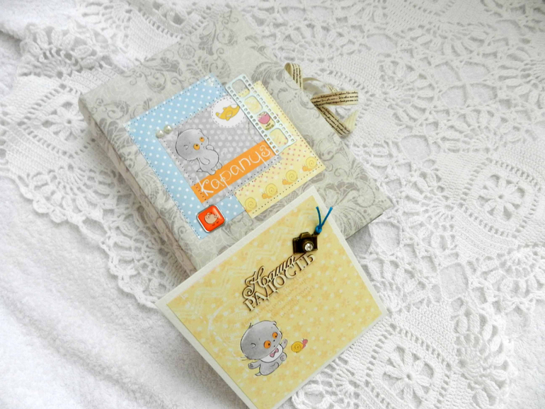 СкрапбукингДобрый вечер! Праздники заканчиваются, новых работ в этом году пока нет, но хочется показать завершающую работу прошлого года. Небольшой альбомчик для фото с фотосессии очаровательного малыша и коробочки под диск. Альбом 15х21, 5 разворотов, вмещает 24фото размера 9х12. Под катом много фото)