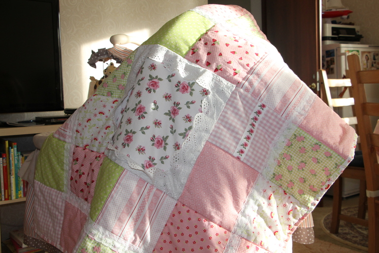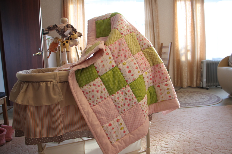 Одно одеяло было задумано еще до Лериного рождения, шила я его на выписку будучи на девятом месяце беременности)) ткань - набор немецкого хлопка; кант, бейка и низ - американский хлопок, внутри два слоя синтепона. Очень теплое. Очень мягкое. Очень красивое )