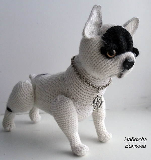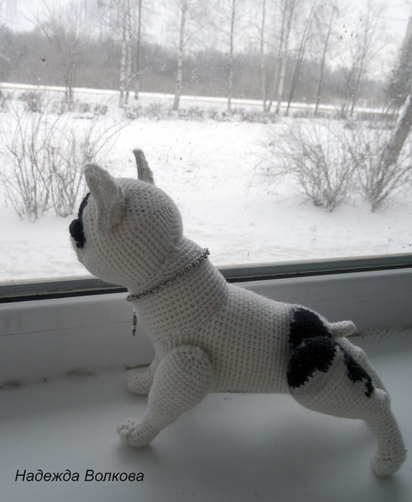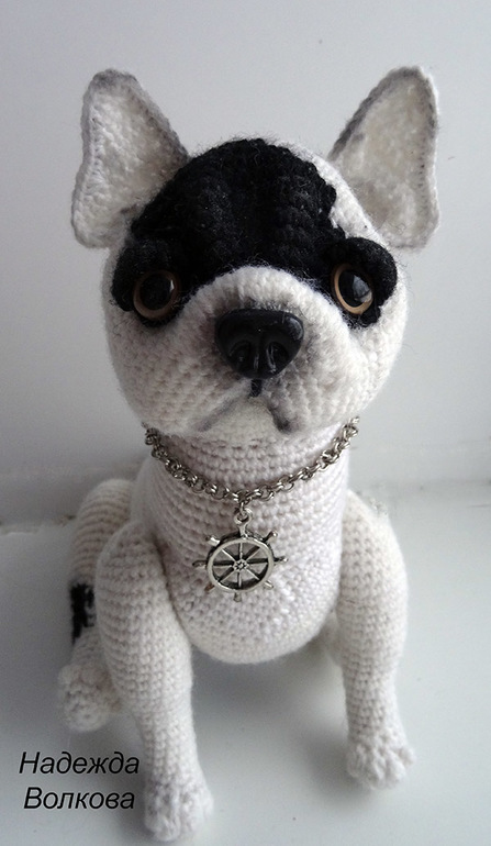 Амигуруми (вязаные игрушки)Связался очень грустный собакен по мк Ольги (Ауринка). Вообще должен быть французский бульдог, но мама по-моему согрешила со свинкой) (есть какие-то общие черты) Пряжа Детский каприз от Пехорки, крючок 2. Собака сама стоит, сидит, может и полежать. Лапки на шплинтах. Размер песика 16 на 20 см.