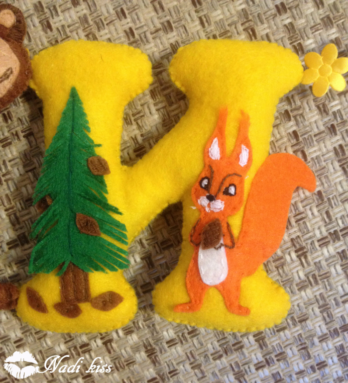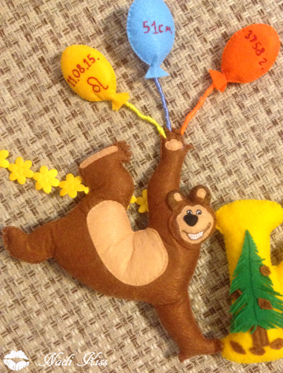 ФетрХочу показать еще одно моё творение! На этот раз именное панно с персонажами из мультфильма Маша и Медведь, в подарок для Илюши!!!!