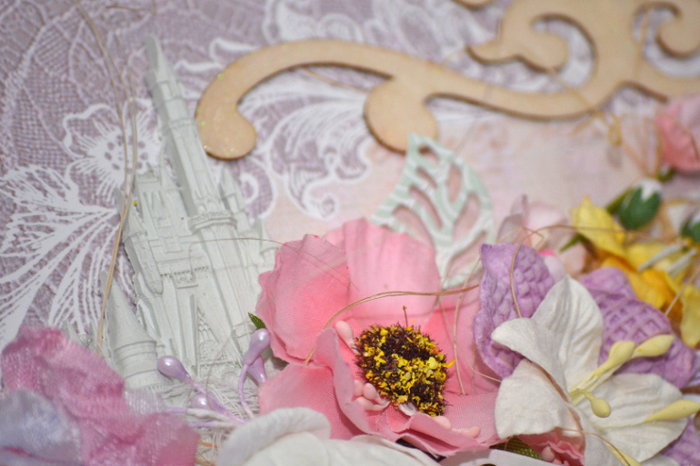 В цветах притаился гипсовый замок для маленькой принцессы.
