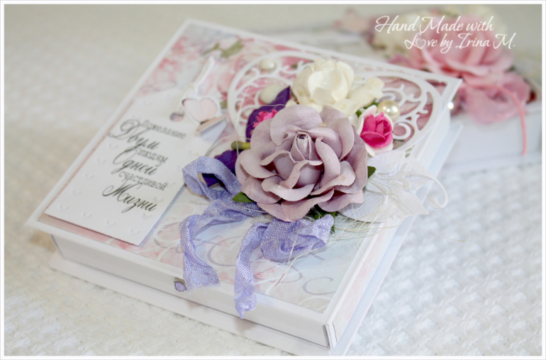 Так уже хочется тепла и весны, поэтому покажу сегодня цветочные свадебные коробочки для денег. Размер 11х11х2 см.