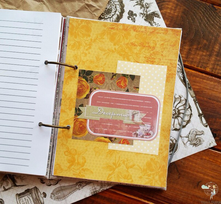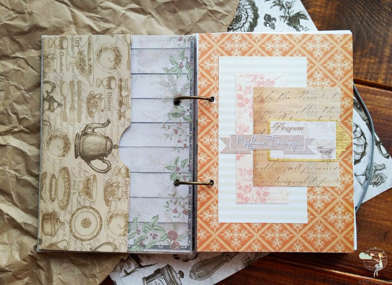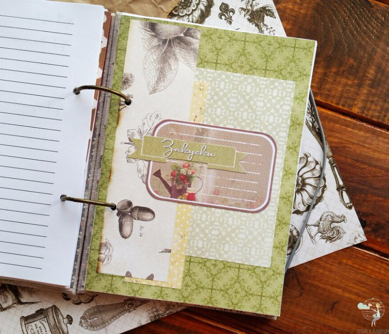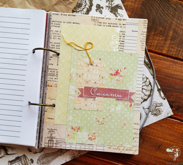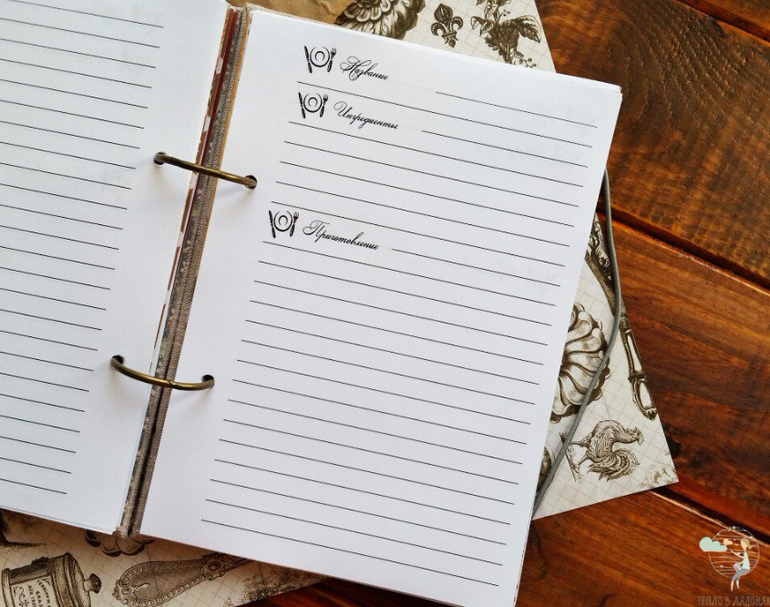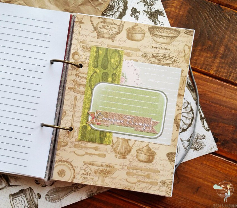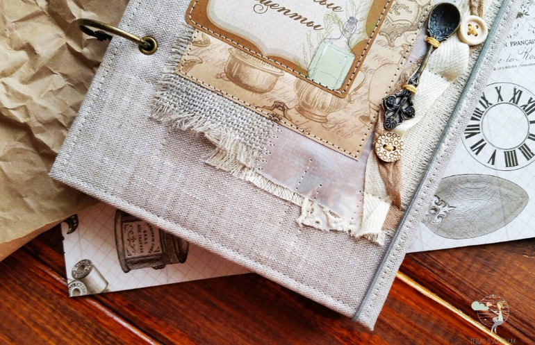 Сделала по вдохновению кулинарную книгу) Формат А5, обложка обтянута льном, внутри линованные листочки, 6 разделителей - первые блюда, вторые блюда, салаты, закуски, выпечка, десерты.