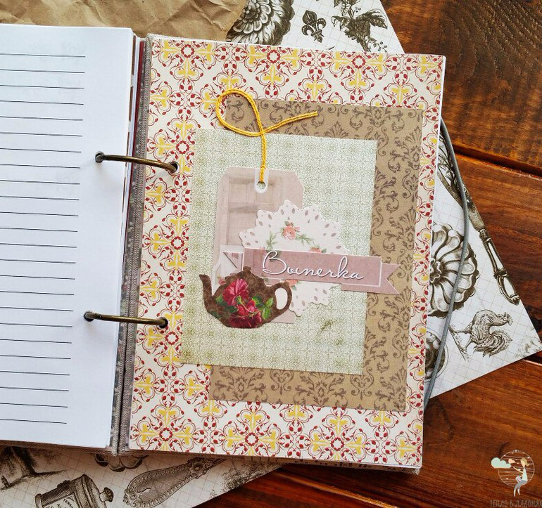 Закрывается на резинку, листочки крепятся на разъемные кольца - всегда можно добавить вырезку из журнала, свои листочек с записями и т.д., проколов бумажку обычным дыроколом.