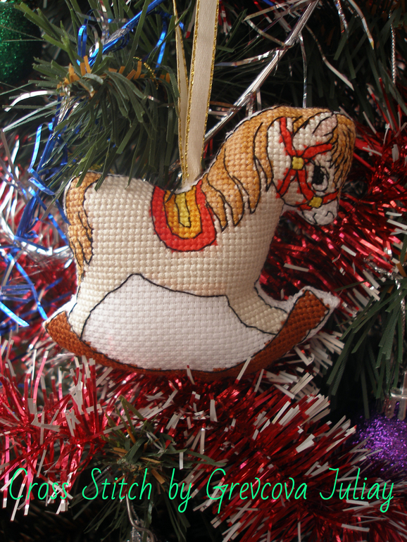 Вышивка картин. Крестиком, гладью, бисером, стразами, лентами, схемы по вышивкам, процессыОчень люблю лошадок-качалок))) Наткнулась в одном из журналов на выкройку лошадки, не могла не вышить!))) Результат очень понравился)))