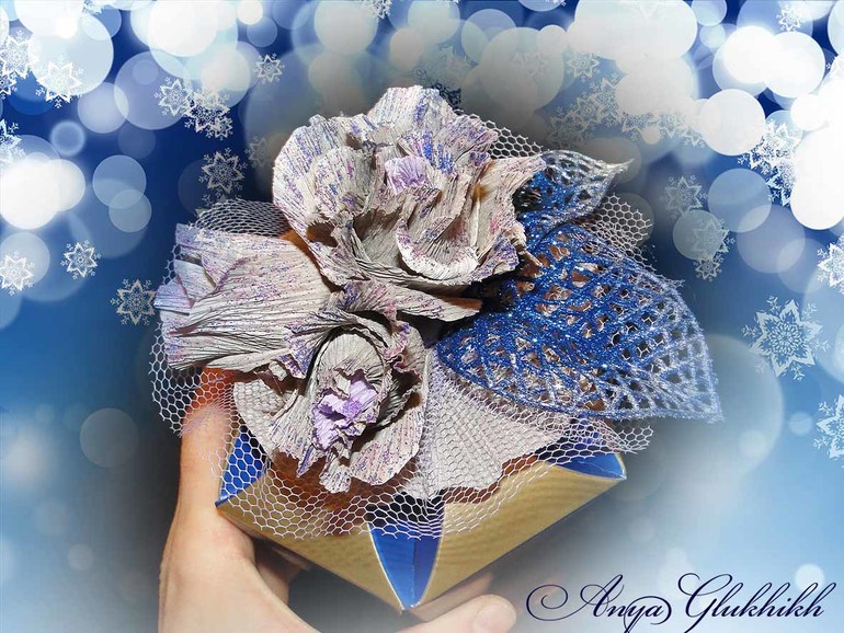 ...вот она, предновогодняя суета...подарки делала в нескольких цветовых решениях - голубом, розовом, фиолетовом, зеленом...в итоге - фото исключительно такие ;-(