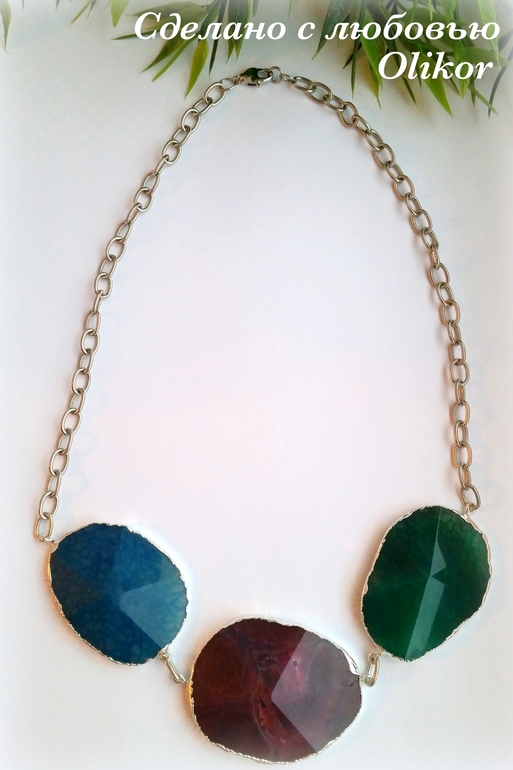 Срезы разного размера есть, этот прям маленький. Из более крупных делаю с 3 или 5 камнями, увесистые, но не тяжелые. По стоимости зависит от размера и фурнитуры