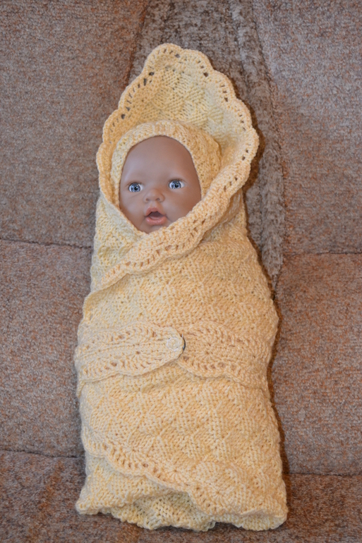 Красиво! А мой плед медленными темпами в виде 52 квадратиков движется к завершению. Попробуй ,Светлан, ещё конверт в виде кокона связать. Очень мило куклы в нем смотрятся.