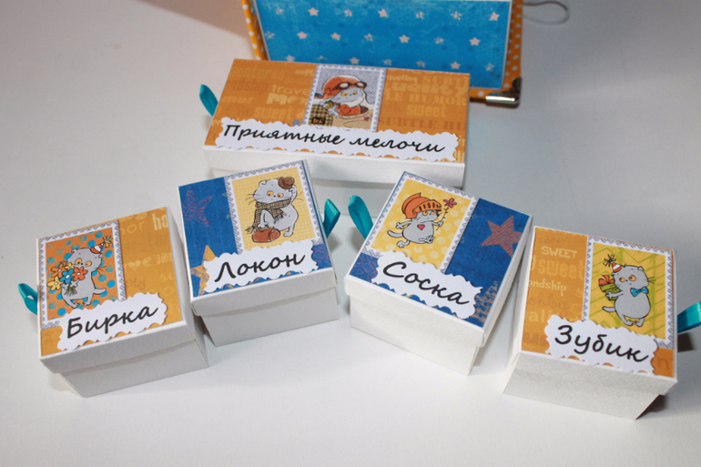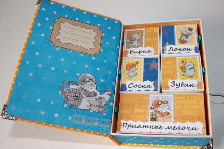 В папке кармашек и 2 файлика, закрывается на резиночку. В маминых сокровищах 5 коробочек, закрывается тоже на резиночку