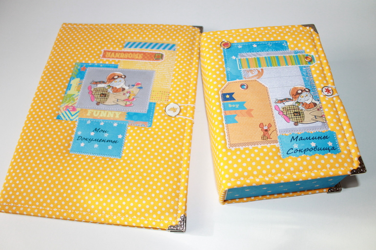 СкрапбукингУ меня новый любимчик - это котик Басик. Сотворились с ним папка для документов и коробочка Мамины сокровища