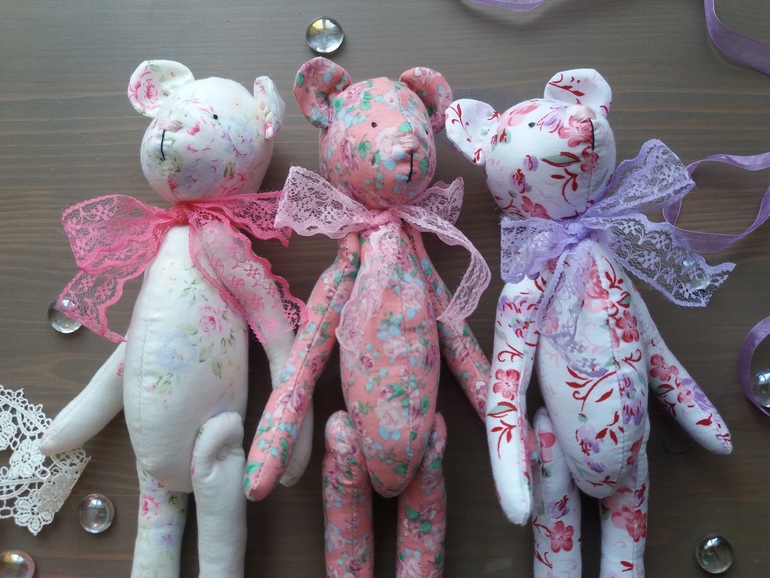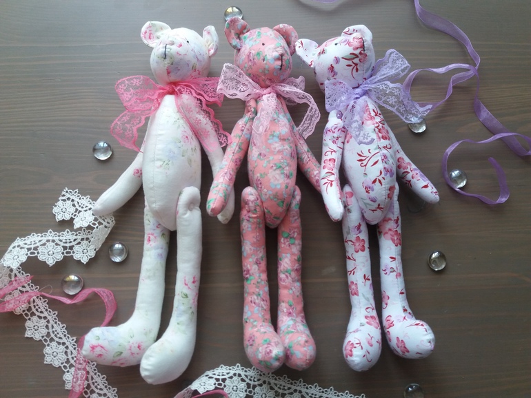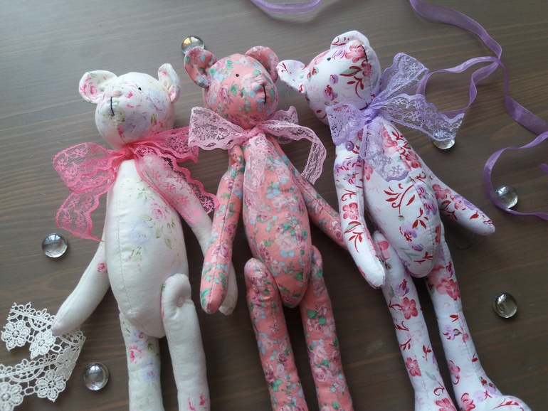 Игрушечный мир - животныеРешила сразу трех сшить, оптом быстрее получается)). Ростик 28см. Ткань цветастый хлопок, синтепух, пуговичное крепление.