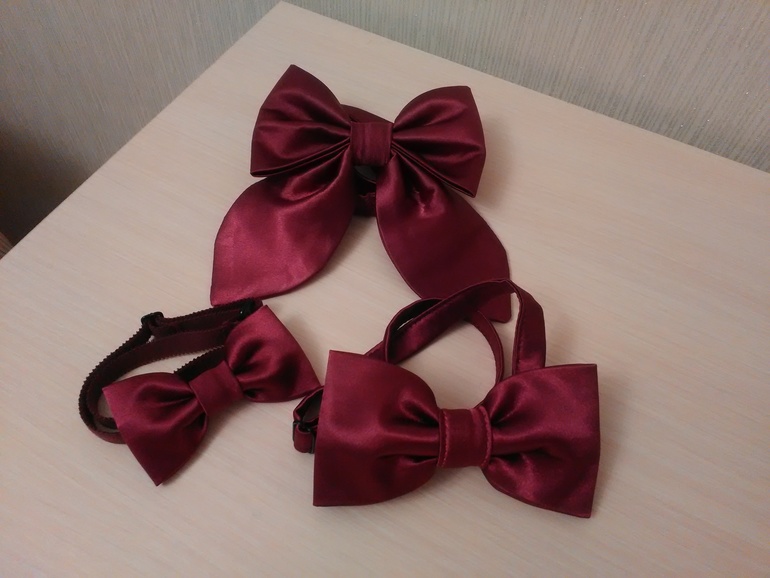 Ну и бантики - из атласной ткани, получились нарядные очень. Маленький для сынули, большой для папы и еще больше, с ленточками для мамы