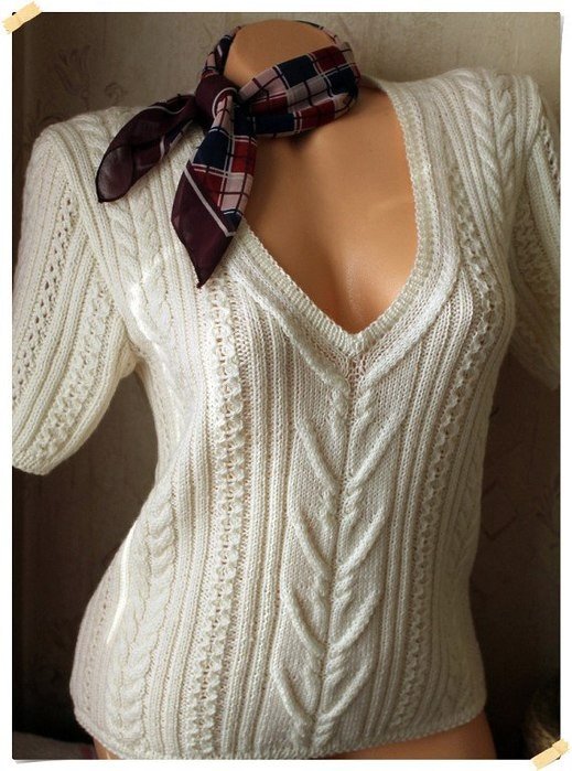 девочки, лежит у меня пряжа белая (но не ярко белая) шерсть мериноса. Хочу связать себе свитерок или пуловер. Может у кого-нибудь лежат в закладках интересные модели. Люблю косы и ураны.