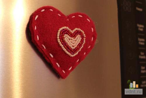 Предлагаю сделать сердечко-магнит на холодильник. Во-первых, это просто, а во-вторых - ваш подарок будет напоминать о вас постоянно:)