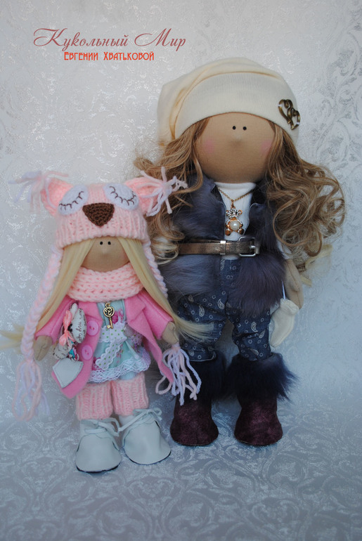 Игрушечный мир - животныеПредставляю вам моих новых девочек-две сетрички Лиззи и Китти. Девчонки собрались на прогулку-ведь за окном отличная погода! Старшая Лиззи-большая модница-в меховой жилетке из меха тосканы, в уггах с меховой опушкой, с варежками на резинке. Китти- очаровательная блондинка, которая обожает розовый цвет, не ходит гулять без своего медвежонка. Рост Лиззи-35 см, Китти-25 см. Обе стоят самостоятельно, могут сидеть.