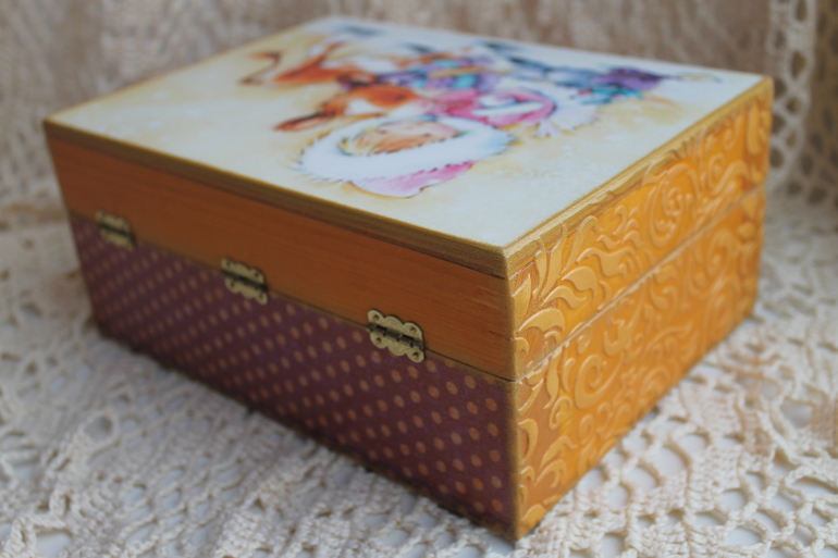 ДекупажДанная шкатулочка выполнена на обменчик для доченьки одной замечательной мастерицы и одновременно моей здешней подружки!!!!!!!!! Будет предназначена для хранения сокровищ маленькой принцессы!!!!!