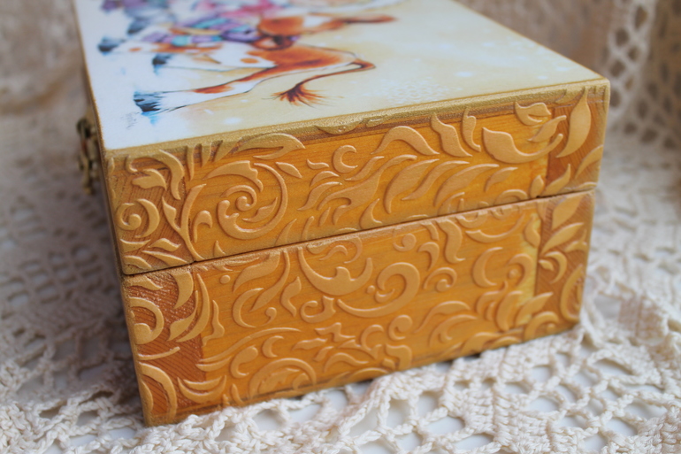 Как ни странно, но здесь я использовала заготовку чайной шкатулки...Поэтому, в случае чего, то её можно применить и для хранения чайных пакетиков на кухне...