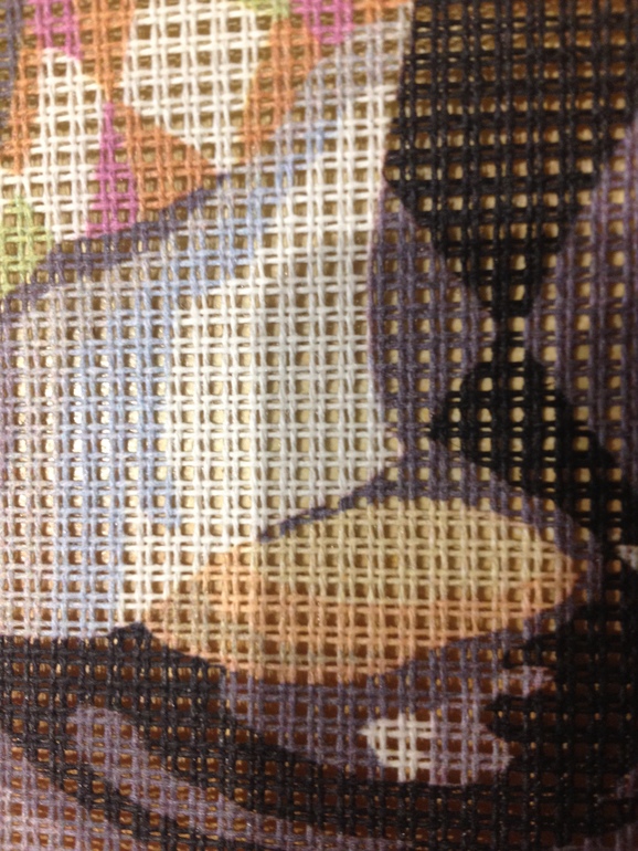 Я думаю это вышивается шерстяными нитками в 2 нити. Гобеленовый шов вовсе не сложный, удобнее его шить с правого нижнего угла.