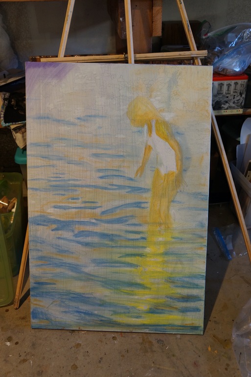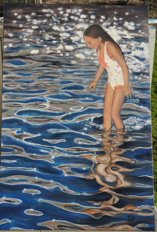 Намучилась с бликами. Хотелось добиться впечатления,что вода вокруг движется. Удалось ли незнаю. Даже не могу оценить красивая получилась работа или нет, так она замылила мне глаза! 3 месяца работы (урывками) позади. Чувствую огромное облегчение.