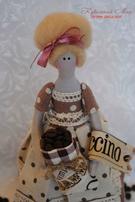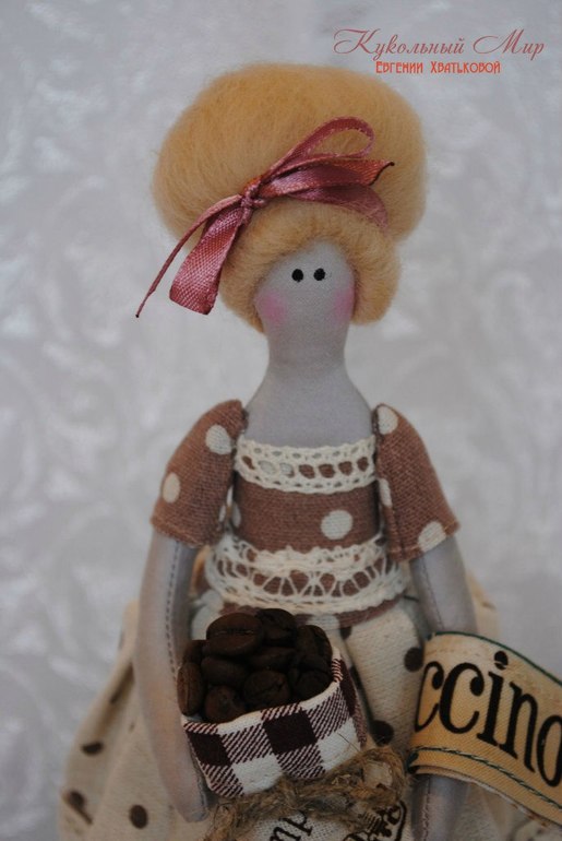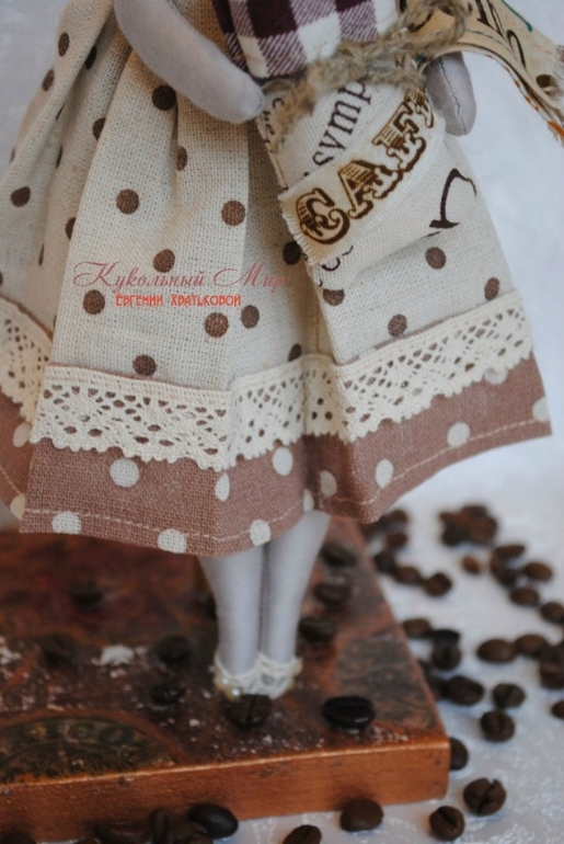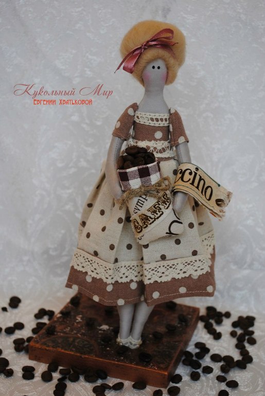 Игрушечный мир - животныеПервая моя кофейная барышня. Рост 26 см. Стоит на подставочке ручной работы в технике декупаж. Под катом больше фото