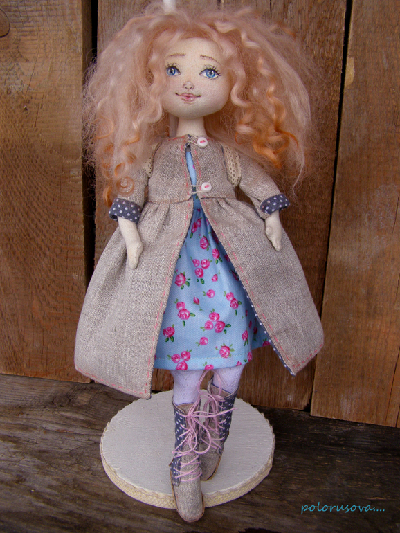 Игрушечный мир - животныеДумаете... ангел-это белое и пушистое создание..)) а нет! Она ясная и чистая девочка с небесными глазами и изящными длинными ножками). В бирюзовом платье и белоснежных чулочках...а ещё кудри...цвета розового шампанского!. И модное платье-пальто из льна, а ещё высокие текстильные сапожки. Всё как настоящее, только маленькое)). Самое главное...конечно ..крылышки, которые можно снимать для того, чтобы спуститься на землю.. и жить...среди нас.....