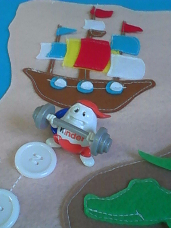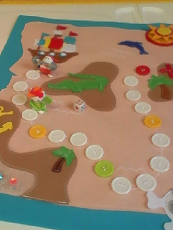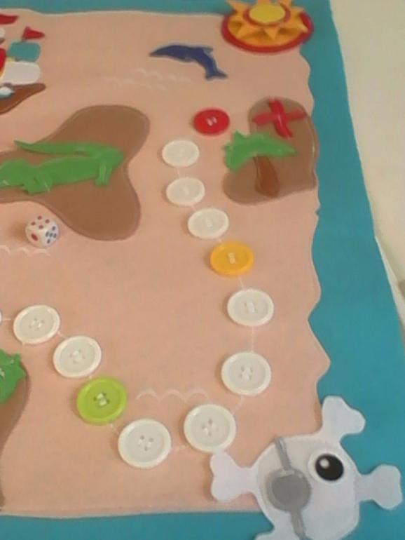 ФетрГришка проявляет все больше интереса к пиратам, так что я решила сшить для него простенькую игру-бродилку из фетра (сколько за последнее время погибло бумажных пазлов/лото и т.д. в крепких Андрюхиных ручонках