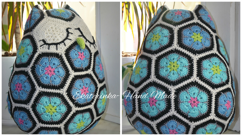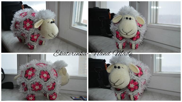 Снова мой любимый мотив "африканский цветок". Вязала из него уже лошадку и слоника, теперь дошли руки до совы и овечки) Овечка для подружки