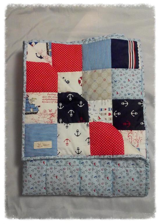 Шитье одежды, выкройки, ремонт одежды, шторы, швейные машины (уже приобретенные)Сшилось еще одеялко для будущего малыша. Из тканей, которые были у меня в наличии, выбрали морскую тематику. Одеялко размером 150*100 см, прослужит малышу не один год.