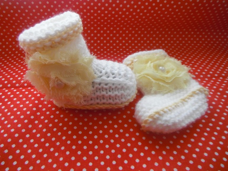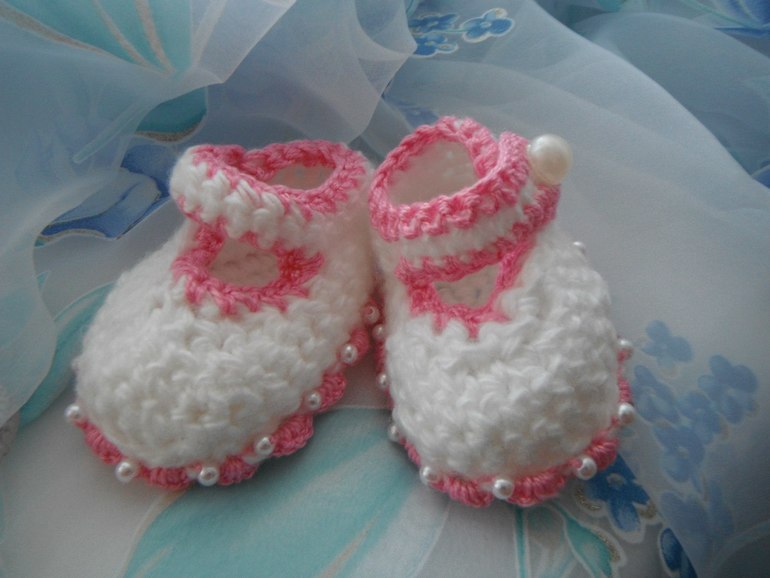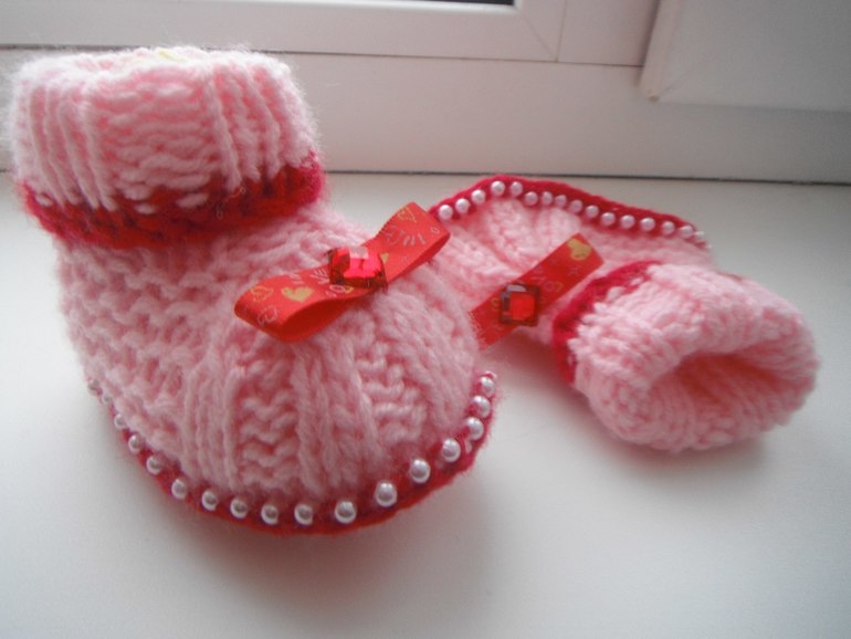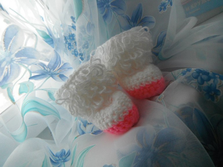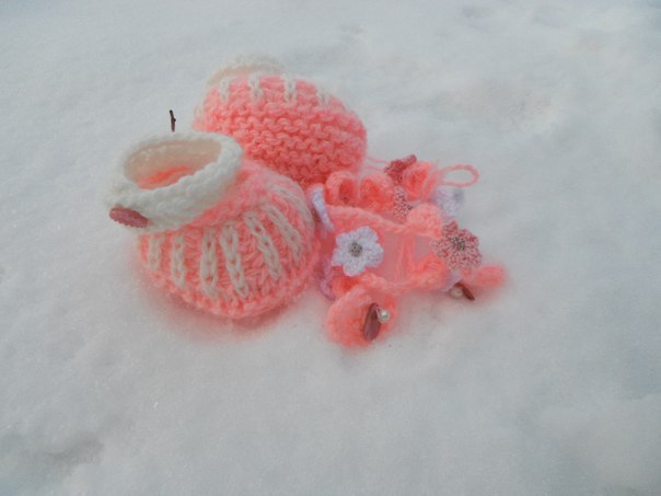 Покажу мои пинетки. Больше люблю вязать спицами, чем крючком. Да и спицами они эластичнее, обычно просят на вырост, а спицами они как раз хорошо тянутся (платочной вязкой).