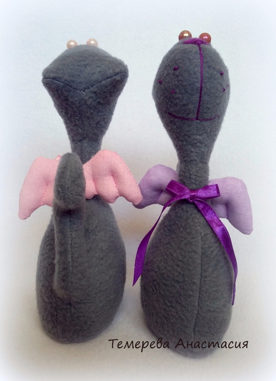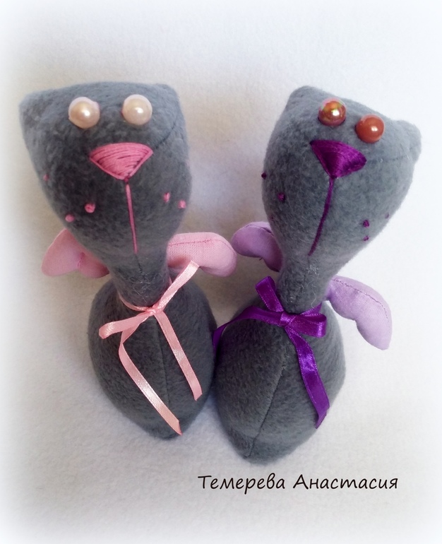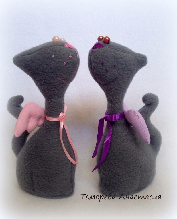 Игрушечный мир - животныеСшились у меня очередные игрушки из флиса. Ими стали котики-ангелы. Мордочки и хвостики меня просто покорили и я не смогла пройти мимо них. Ростиком вышли 19 см. Стоят очень хорошо. Сделала подкладку из картона как для большеножек.