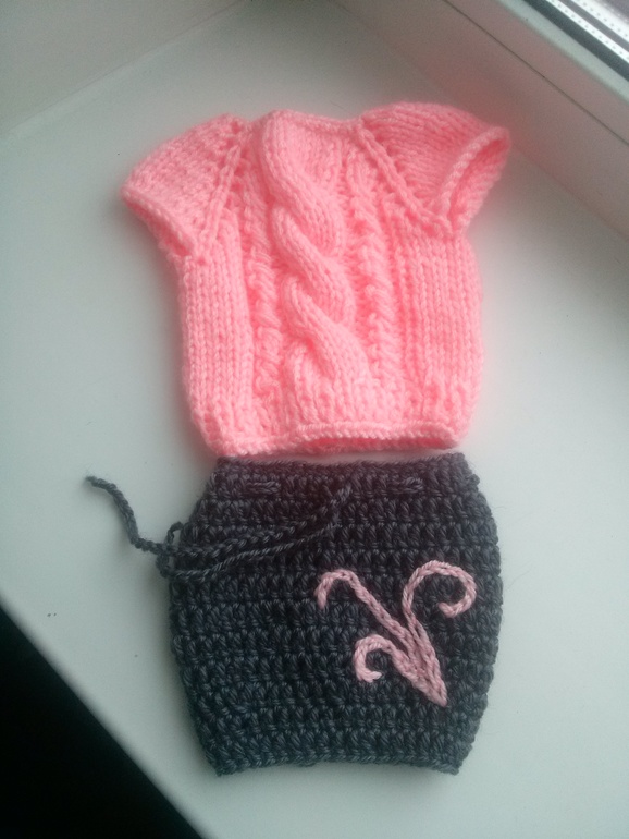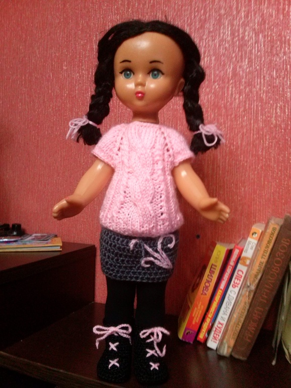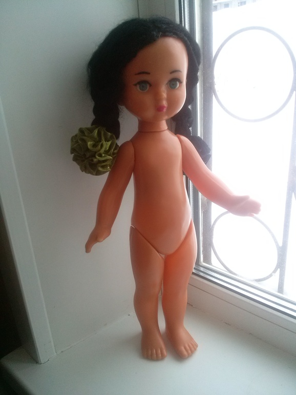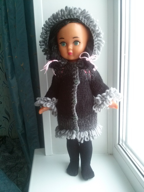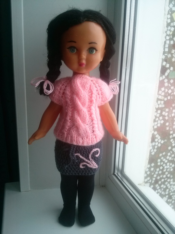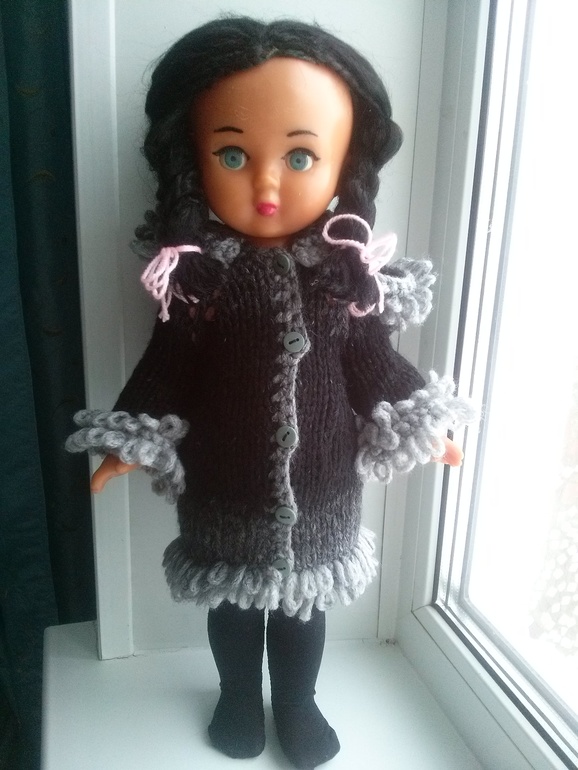 Вязание спицамиЗнакомая попросила одеть куколку. Кукле 50 лет, как сказала хозяйка! Найдена знакомой в гараже, узнана, помыта. Одежки кукольные были из плюша. Плюш от старости сыплется, распарывать и перешивать нет возможности, задыхаюсь. Вязала. Результат под срезом)))) более 5 фото