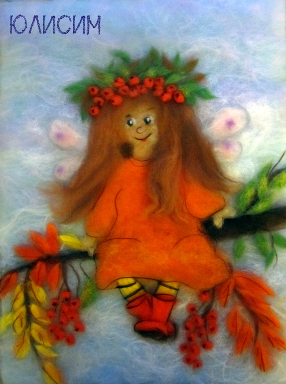 Фелтинг (валяние шерсти)Долго я зрела до этой картины) Но все же решила ее нарисовать) Озорная и веселая феечка))) Размер картины 30*40. Если кому понравилась, буду рада ответить на все вопросы)